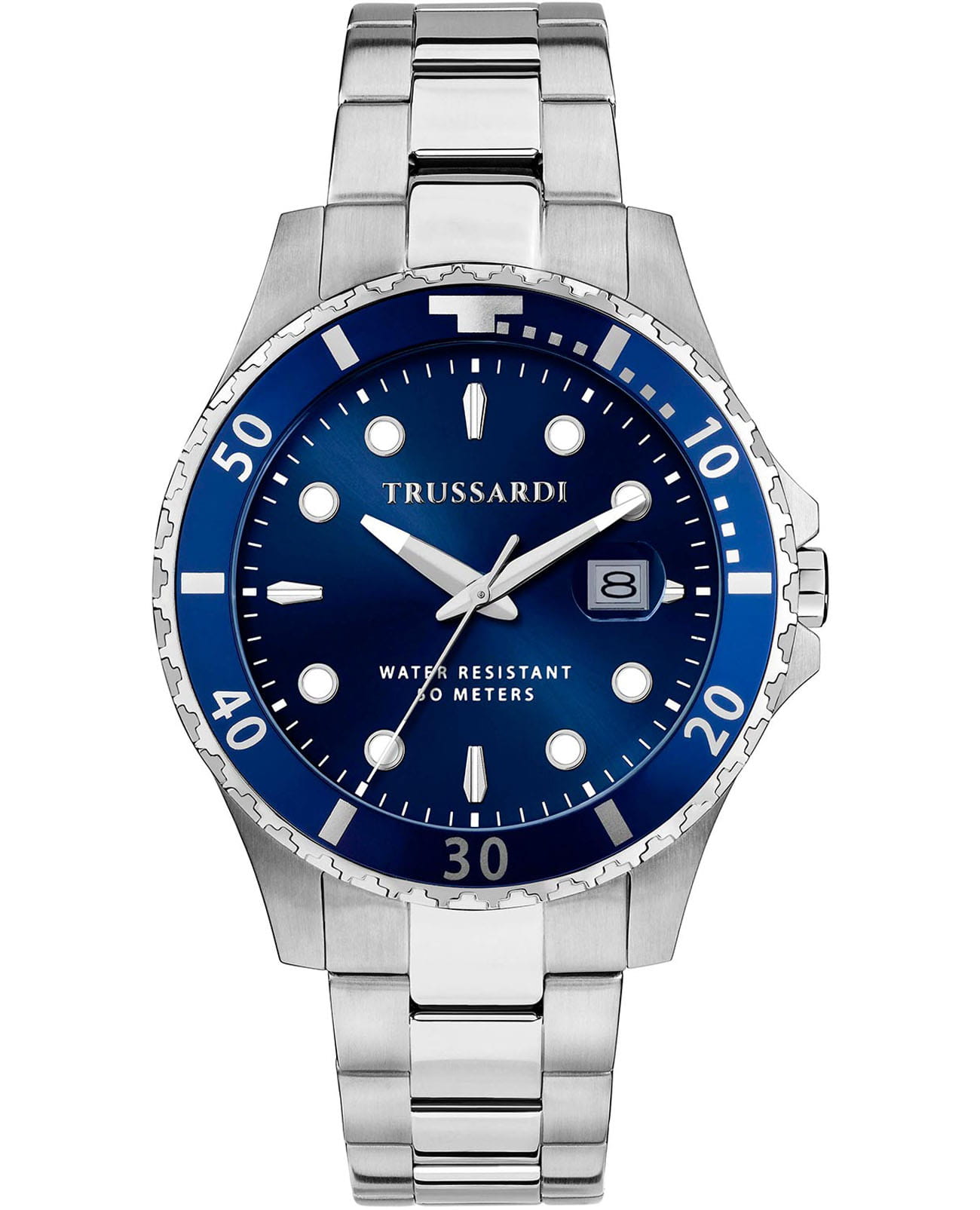 Итальянские мужские часы Trussardi City Life R2453169006 - это стильный мужской аксессуар, который сочетает элегантный дизайн и практичность. Корпус выполнен из нержавеющей стали с безелемБезельВнешний ободок, закрепляющий стекло. В спортивных часах так называется поворотное кольцо с делениями на циферблате, выполняет роль таймера – замеряет отрезки времени на шкале. Неподвижный безель – элемент декора. Однонаправленно вращающийся безель на дайверских часах позволяет фиксировать моменты погружения и выныривания на поверхность. с IP-покрытиемIP-покрытиеМетод ионного напыления. Демонстрирует повышенную устойчивость к истиранию, окислению и химическим веществам. Под воздействием высокого давления и температуры около 1500°C молекулы металла надёжно соединяются с частицами корпуса часов., что обеспечивает долговечность и утончённый внешний вид. Надежное минеральное стеклоМинеральное стеклоМинеральное стекло представляет собой искусственно выращенный минерал кварца. Такое стекло отличается особой устойчивостью к повреждениям и царапинам. Уступает по некоторым качествам сапфировому стеклу. защищает циферблат от царапин и обеспечивает долговечность. Модель оснащена кварцевым механизмом, обеспечивающим высокую точность хода. Браслет из нержавеющей стали с раскладной застёжкойРаскладная застёжкаТакой тип застёжки используется только на браслетах из металла. Она никогда не раскрывается полностью, происходит разделение на 2 и более частей. Раскладывающая застёжка снизит вероятность потери часов к минимуму. обеспечивает комфортное ношение. Водозащита 50 метров позволит защитить корпус от случайных брызг или капель дождя. Окошко даты в положении 3 часов. Стрелки метки оснащены люминесцентным покрытиемЛюминесцентное покрытиеПозволяет считывать показания времени в темноте. Производители наносят на стрелки, часовые индексы, безель или поверхность циферблата светонакопительный состав, дающий холодное свечение., обеспечивающим отличную видимость даже при слабом освещении. Эта модель – отличный выбор для тех, кто ищет сочетание стиля, качества и функциональности. Часы станут не только полезным аксессуаром, но и выразительным элементом вашего имиджа.