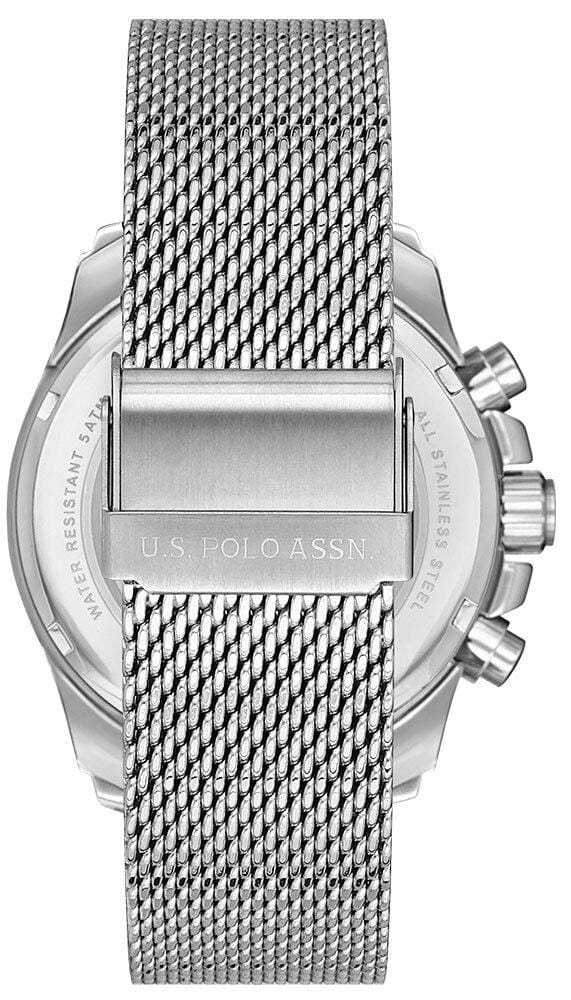 Мужские часы U.S. Polo Assn. Crossing USPA1028-08, кварцевый механизм с высокой точностью. Минеральное стеклоМинеральное стеклоМинеральное стекло представляет собой искусственно выращенный минерал кварца. Такое стекло отличается особой устойчивостью к повреждениям и царапинам. Уступает по некоторым качествам сапфировому стеклу. устойчивое к появлению царапин, обладающее высокой прозрачностью. Корпус изготовлен из нержавеющей стали. На циферблате три дополнительных индикатора. Центральные часовая, минутная и секундная стрелки. Индикация даты и дня недели. 12/24х часовой формат времени. Стрелки с люминесцентным покрытиемЛюминесцентное покрытиеПозволяет считывать показания времени в темноте. Производители наносят на стрелки, часовые индексы, безель или поверхность циферблата светонакопительный состав, дающий холодное свечение.. Класс водозащиты: 50 метров, позволит защитить корпус от случайных брызг или капель дождя. Стальной браслет миланского плетения на раскладном замкеРаскладной замокДанный вариант застежки используется только на часах с металлическим браслетом. Отличительная особенность такого крепления в том, что длина браслета становится универсальной и вы можете самостоятельно отрегулировать нужный вам размер – застежка просто двигается по браслету часов..