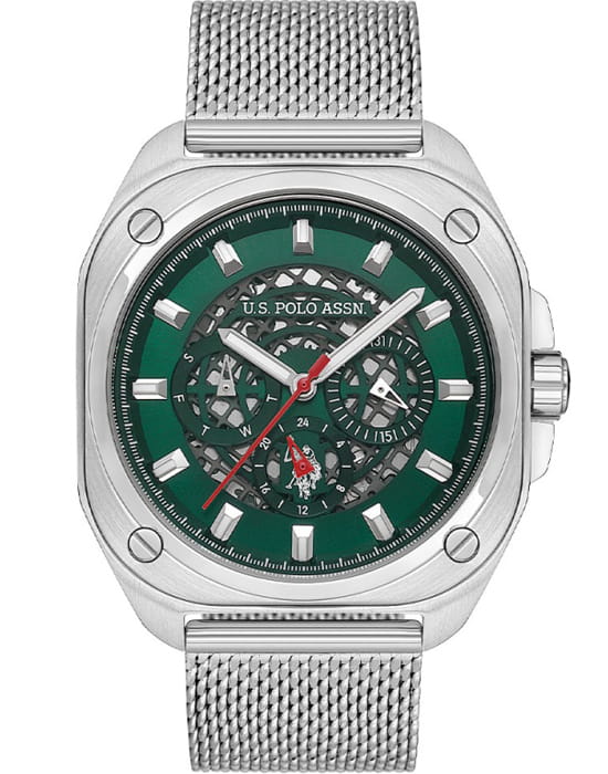 Мужские часы U.S. Polo Assn. USPA1063-04, кварцевый механизм с высокой точностью. Минеральное стеклоМинеральное стеклоМинеральное стекло представляет собой искусственно выращенный минерал кварца. Такое стекло отличается особой устойчивостью к повреждениям и царапинам. Уступает по некоторым качествам сапфировому стеклу. устойчивое к появлению царапин, обладающее высокой прозрачностью. Корпус изготовлен из нержавеющей стали. Центральные часовая, минутная и секундная стрелки. Окошко даты находится в положении 3 часа. Стрелки с люминесцентным покрытиемЛюминесцентное покрытиеПозволяет считывать показания времени в темноте. Производители наносят на стрелки, часовые индексы, безель или поверхность циферблата светонакопительный состав, дающий холодное свечение.. Класс водозащиты: 50 метров, позволит защитить корпус от случайных брызг или капель дождя.