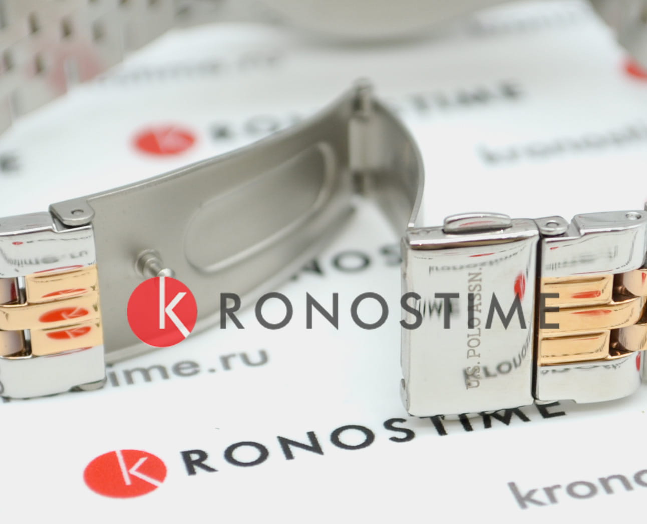 Женские часы U.S. Polo Assn. Fundamental USPA2041-08, кварцевый механизм с высокой точностью. Минеральное стеклоМинеральное стеклоМинеральное стекло представляет собой искусственно выращенный минерал кварца. Такое стекло отличается особой устойчивостью к повреждениям и царапинам. Уступает по некоторым качествам сапфировому стеклу. устойчивое к появлению царапин, обладающее высокой прозрачностью. Корпус изготовлен из нержавеющей стали. БезельБезельВнешний ободок, закрепляющий стекло. В спортивных часах так называется поворотное кольцо с делениями на циферблате, выполняет роль таймера – замеряет отрезки времени на шкале. Неподвижный безель – элемент декора. Однонаправленно вращающийся безель на дайверских часах позволяет фиксировать моменты погружения и выныривания на поверхность. из нержавеющей стали с IP-покрытиемIP-покрытиеМетод ионного напыления. Демонстрирует повышенную устойчивость к истиранию, окислению и химическим веществам. Под воздействием высокого давления и температуры около 1500°C молекулы металла надёжно соединяются с частицами корпуса часов.. Стрелки и метки с люминесцентным покрытиемЛюминесцентное покрытиеПозволяет считывать показания времени в темноте. Производители наносят на стрелки, часовые индексы, безель или поверхность циферблата светонакопительный состав, дающий холодное свечение.. Класс водозащиты: 50 метров, позволит защитить корпус от случайных брызг или капель дождя. Стальной браслет с частичным IP-покрытиемIP-покрытиеМетод ионного напыления. Демонстрирует повышенную устойчивость к истиранию, окислению и химическим веществам. Под воздействием высокого давления и температуры около 1500°C молекулы металла надёжно соединяются с частицами корпуса часов. на застёжке «бабочка» с кнопкамиЗастёжка "бабочка"Такой вид застёжки дополняется предохранителями, помогающими избежать случайного раскрытия браслета. Обладают изящным исполнением. .