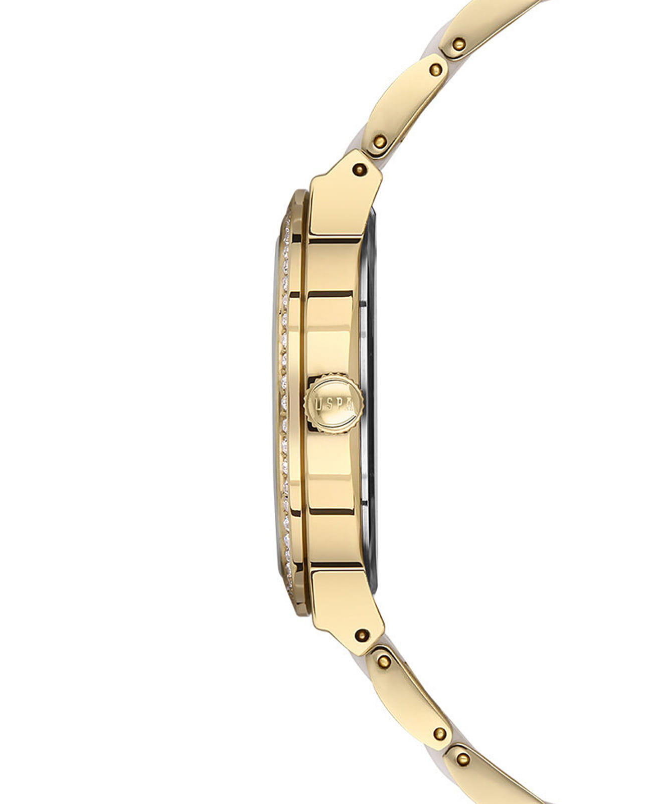 Женские часы U.S. Polo Assn Stile USPA2058-02, кварцевый механизм с высокой точностью. Минеральное стеклоМинеральное стеклоМинеральное стекло представляет собой искусственно выращенный минерал кварца. Такое стекло отличается особой устойчивостью к повреждениям и царапинам. Уступает по некоторым качествам сапфировому стеклу. устойчивое к появлению царапин, обладающее высокой прозрачностью. Корпус изготовлен из нержавеющей стали с IP-покрытиемIP-покрытиеМетод ионного напыления. Демонстрирует повышенную устойчивость к истиранию, окислению и химическим веществам. Под воздействием высокого давления и температуры около 1500°C молекулы металла надёжно соединяются с частицами корпуса часов.. БезельБезельВнешний ободок, закрепляющий стекло. В спортивных часах так называется поворотное кольцо с делениями на циферблате, выполняет роль таймера – замеряет отрезки времени на шкале. Неподвижный безель – элемент декора. Однонаправленно вращающийся безель на дайверских часах позволяет фиксировать моменты погружения и выныривания на поверхность. украшен кристаллами. Стрелки с люминесцентным покрытиемЛюминесцентное покрытиеПозволяет считывать показания времени в темноте. Производители наносят на стрелки, часовые индексы, безель или поверхность циферблата светонакопительный состав, дающий холодное свечение.. Класс водозащиты: 30 метров, позволит защитить корпус от случайных брызг или капель дождя. Стальной браслет с керамическими вставками и частичным IP-покрытиемIP-покрытиеМетод ионного напыления. Демонстрирует повышенную устойчивость к истиранию, окислению и химическим веществам. Под воздействием высокого давления и температуры около 1500°C молекулы металла надёжно соединяются с частицами корпуса часов. на раскладной застёжкеРаскладная застёжкаТакой тип застёжки используется только на браслетах из металла. Она никогда не раскрывается полностью, происходит разделение на 2 и более частей. Раскладывающая застёжка снизит вероятность потери часов к минимуму..