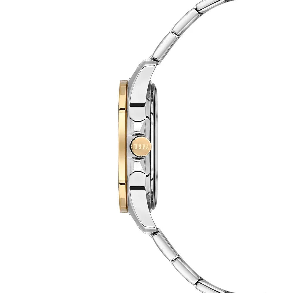Женские элегантные часы U.S. Polo Assn. Stile USPA2088-04, кварцевый механизм с высокой точностью. Минеральное стеклоМинеральное стеклоМинеральное стекло представляет собой искусственно выращенный минерал кварца. Такое стекло отличается особой устойчивостью к повреждениям и царапинам. Уступает по некоторым качествам сапфировому стеклу. устойчивое к появлению царапин, обладающее высокой прозрачностью. Изысканный корпус изготовлен из нержавеющей стали с неподвижным безелемБезельВнешний ободок, закрепляющий стекло. В спортивных часах так называется поворотное кольцо с делениями на циферблате, выполняет роль таймера – замеряет отрезки времени на шкале. Неподвижный безель – элемент декора. Однонаправленно вращающийся безель на дайверских часах позволяет фиксировать моменты погружения и выныривания на поверхность. с IP-покрытиемIP-покрытиеМетод ионного напыления. Демонстрирует повышенную устойчивость к истиранию, окислению и химическим веществам. Под воздействием высокого давления и температуры около 1500°C молекулы металла надёжно соединяются с частицами корпуса часов. и с кристаллами. Лаконичные центральные часовая, минутная и секундная стрелки. Водонепроницаемость 3 АТМ позволяет использовать часы в повседневных условиях — при мытье рук или под лёгким дождём. Браслет выполнен из стали с IP-покрытиемIP-покрытиеМетод ионного напыления. Демонстрирует повышенную устойчивость к истиранию, окислению и химическим веществам. Под воздействием высокого давления и температуры около 1500°C молекулы металла надёжно соединяются с частицами корпуса часов. и оснащён раскладной застёжкойРаскладная застёжкаТакой тип застёжки используется только на браслетах из металла. Она никогда не раскрывается полностью, происходит разделение на 2 и более частей. Раскладывающая застёжка снизит вероятность потери часов к минимуму., обеспечивающей комфорт и уверенную фиксацию на запястье, а также добавляя завершающий штрих к этому стильному аксессуару. Циферблат с кристаллами подчёркивает изысканный характер часов, создавая универсальный образ, подходящий как для повседневных ситуаций, так и для особых случаев.