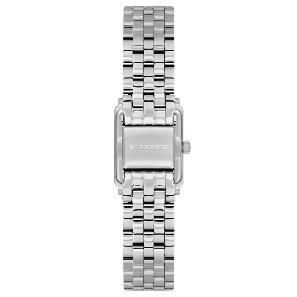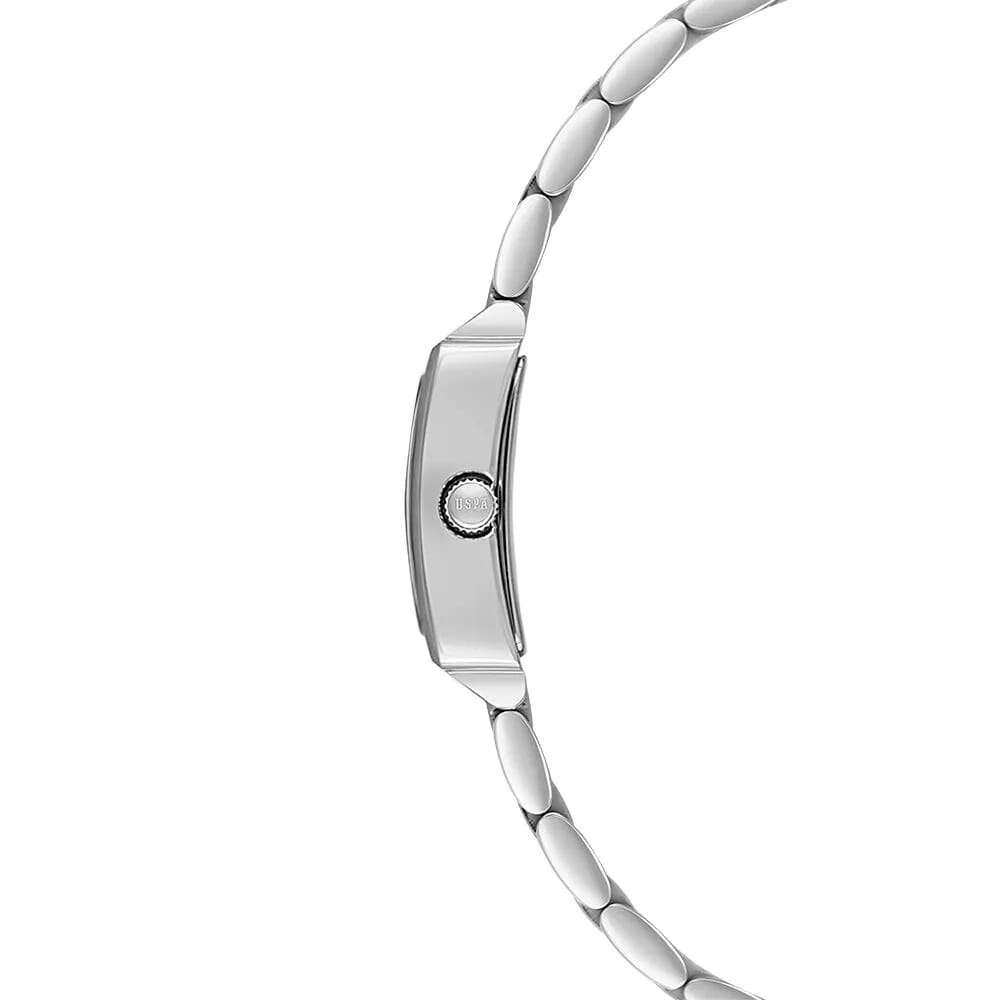 Женские наручные часы U.S. Polo Assn. Stile USPA2107-01 — это стильный и лаконичный аксессуар, выполненный в форме квадрата. Модель изготовлена из стали серебристого цвета, придающий благородный внешний вид и устойчивость к царапинам. Циферблат с кристаллами дополнен лаконичными центральными часовой и минутной стрелками. Защиту циферблата обеспечивает минеральное стеклоМинеральное стеклоМинеральное стекло представляет собой искусственно выращенный минерал кварца. Такое стекло отличается особой устойчивостью к повреждениям и царапинам. Уступает по некоторым качествам сапфировому стеклу., устойчивое к мелким повреждениям. Часы оснащены кварцевым механизмом, гарантирующим точность и минимальное обслуживание. Водонепроницаемость 3 АТМ позволяет использовать часы в повседневных условиях — при мытье рук или под лёгким дождём. Браслет выполнен из стали и оснащён раскладной застёжкойРаскладная застёжкаТакой тип застёжки используется только на браслетах из металла. Она никогда не раскрывается полностью, происходит разделение на 2 и более частей. Раскладывающая застёжка снизит вероятность потери часов к минимуму., обеспечивающей комфорт и уверенную фиксацию на запястье. Толщина корпуса составляет 7 мм, а его размер 19 мм, что делает часы компактными и удобными в носке. Эти часы станут универсальным аксессуаром для уверенных в себе женщин, которые ценят сочетание стиля, качества и эстетики — идеальный выбор для повседневного образа и торжественных случаев.