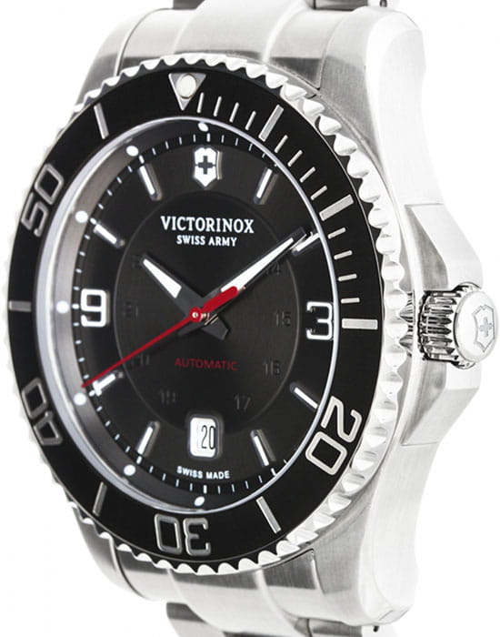 Мужские механические часы с сапфировым стеклом Victorinox 241705, механический механизм (автоматический калибр) с высокой точностью. Класс водозащиты: 100 метров, позволит плавать, нырять и заниматься другими водными видами спорта. Корпус часов изготовлен из стали, цвета.