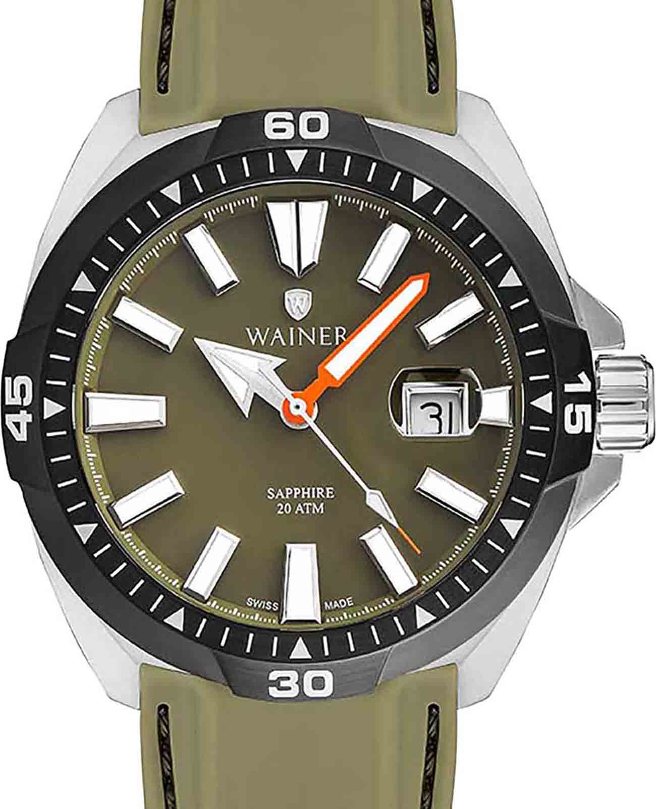 Швейцарские мужские кварцевые часы Wainer WA.10922-C с механизмом калибра Ronda 515 станут превосходным выбором для мужчин, ценящих надежность и стиль. Круглый корпус из нержавеющей стали 316L с частичным PVD-покрытиемPVDУльтратонкое покрытие наносится в технике вакуумного напыления, сочетает в себе нитрид титана особой прочности со слоем золота или оксида хрома. Несёт в себе декоративную или защитную функцию. диаметром 44 мм защищен прочным сапфировым стекломСапфировое стеклоПрочный и надёжный материал из кристалла сапфира синтетического происхождения, характеризующийся особой твёрдостью и устойчивостью к царапинам и повреждениям.. Циферблат украшен фирменным логотипом Wainer и метками в виде штрихов, а окошко даты с увеличительным стеклом расположено в положении 3 часа. Рифленая заводная головка с защитой обеспечивает дополнительную надежность механизма. Часы имеют класс водозащиты 200 метров, позволит плавать, нырять и заниматься другими водными видами спорта. Модель комплектуется силиконовым ремешком на стандартной застежке. Прочный корпус и высококачественный механизм гарантируют долговечность использования, делая эти часы идеальным аксессуаром для активного образа жизни.