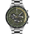 Мужские наручные часы-хронографХронографФункция позволяет измерять отрезки времени с особой точностью: часы, минуты, секунды. Верным признаком хронографа является наличие на циферблате 3 дополнительных окошек-счётчиков. WA.19032-E с надежным кварцевым механизмом. Корпус часов изготовлен из нержавеющей стали 316L. Стальной браслет на застежке "бабочке". Окошко даты находится в между 4 и 5 часами. Сапфировое стеклоСапфировое стеклоПрочный и надёжный материал из кристалла сапфира синтетического происхождения, характеризующийся особой твёрдостью и устойчивостью к царапинам и повреждениям.. Уровень водозащиты: 100 метров, позволит плавать, нырять и заниматься другими водными видами спорта. 12 и 24-часовой формат времени. БезельБезельВнешний ободок, закрепляющий стекло. В спортивных часах так называется поворотное кольцо с делениями на циферблате, выполняет роль таймера – замеряет отрезки времени на шкале. Неподвижный безель – элемент декора. Однонаправленно вращающийся безель на дайверских часах позволяет фиксировать моменты погружения и выныривания на поверхность. с PVD-покрытиемPVDУльтратонкое покрытие наносится в технике вакуумного напыления, сочетает в себе нитрид титана особой прочности со слоем золота или оксида хрома. Несёт в себе декоративную или защитную функцию.. Стрелки с люминесцентным покрытиемЛюминесцентное покрытиеПозволяет считывать показания времени в темноте. Производители наносят на стрелки, часовые индексы, безель или поверхность циферблата светонакопительный состав, дающий холодное свечение.. Встроенный Второй часовой поясВторой часовой поясФункция, позволяющая отображать время двух часовых поясов одновременно., секундомерСекундомерСекундоме́р — прибор, способный измерять интервалы времени с точностью до долей секунды. и тахиметрТахиметрРазмеченная шкала, располагается на ободке или безеле часов. Тахиметр позволяет рассчитать скорость на определённом участке пути, расстояние измеряется в километрах или милях..
