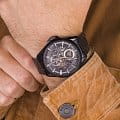 Модель Wainer WA.25511-D сочетает элегантность, швейцарское качество и техническое совершенство. Корпус диаметром 46 мм выполнен из нержавеющей стали 316L с PVD-покрытиемPVDУльтратонкое покрытие наносится в технике вакуумного напыления, сочетает в себе нитрид титана особой прочности со слоем золота или оксида хрома. Несёт в себе декоративную или защитную функцию., обеспечивая прочность и долговечность. Скелетонизированный циферблат раскрывает сложность автоматического механизма Landeron Depa DP2072, а сапфировое стеклоСапфировое стеклоПрочный и надёжный материал из кристалла сапфира синтетического происхождения, характеризующийся особой твёрдостью и устойчивостью к царапинам и повреждениям. защищает дисплей от царапин и механических повреждений. Прозрачная задняя крышка подчеркивает эстетику работы механизма, а браслет из нержавеющей стали 316L с PVD-покрытиемPVDУльтратонкое покрытие наносится в технике вакуумного напыления, сочетает в себе нитрид титана особой прочности со слоем золота или оксида хрома. Несёт в себе декоративную или защитную функцию. и на застёжке-бабочке с кнопкамиЗастёжка "бабочка"Такой вид застёжки дополняется предохранителями, помогающими избежать случайного раскрытия браслета. Обладают изящным исполнением. гарантирует надежную фиксацию и комфортное ношение. Водонепроницаемость до 50 метров защищает часы от случайных брызг и дождя. Wainer WA.25511-D — это стильный аксессуар для мужчин, ценящих швейцарское качество, современный дизайн и мастерство часового искусства.