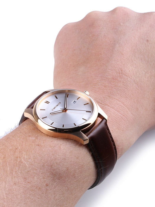 Мужские швейцарские часы с календарём Wenger 01.1441.107, кварцевый механизм с высокой точностью. Класс водозащиты: 30 метров, позволит защитить корпус от случайных брызг или капель дождя. Корпус часов изготовлен из стали, золотистого цвета.