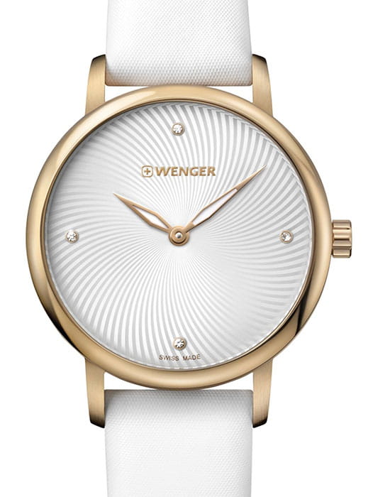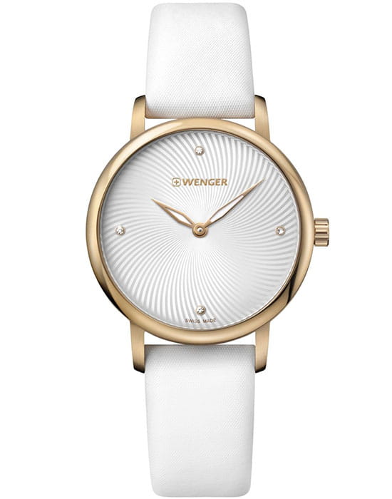 Женские швейцарские часы со стразами Wenger 01.1721.101, кварцевый механизм с высокой точностью. Класс водозащиты: 100 метров, позволит плавать, нырять и заниматься другими водными видами спорта. Корпус часов изготовлен из стали, цвета.