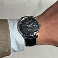 Часы Zeppelin 8460-3 — это изделие, которое идеально сидит на мужском запястье. Уникальный циферблат модели темно-синего цвета отличается светящимися стрелками и индексами благодаря люминесцентному покрытиюЛюминесцентное покрытиеПозволяет считывать показания времени в темноте. Производители наносят на стрелки, часовые индексы, безель или поверхность циферблата светонакопительный состав, дающий холодное свечение. и покрыт закаленным минеральным стекломМинеральное стеклоМинеральное стекло представляет собой искусственно выращенный минерал кварца. Такое стекло отличается особой устойчивостью к повреждениям и царапинам. Уступает по некоторым качествам сапфировому стеклу.. Корпус из полированной стали крепится к классическому синему кожаному ремешку. Дополнительной функцией часов является отображение дня месяца в положении "3 часа". Водонепроницаемость до 50 метров обеспечивает защиту от возможных брызг. Эти часы подойдут для повседневного ношения и станут ярким акцентом в вашем наряде.
